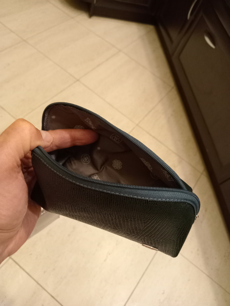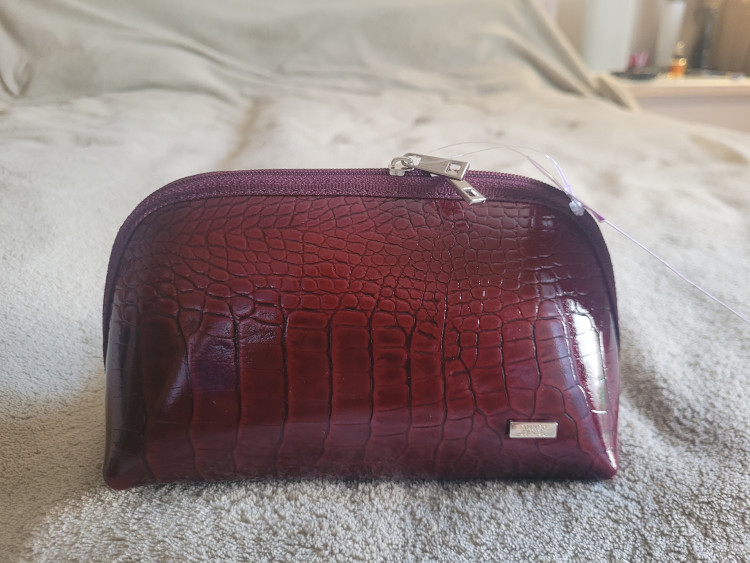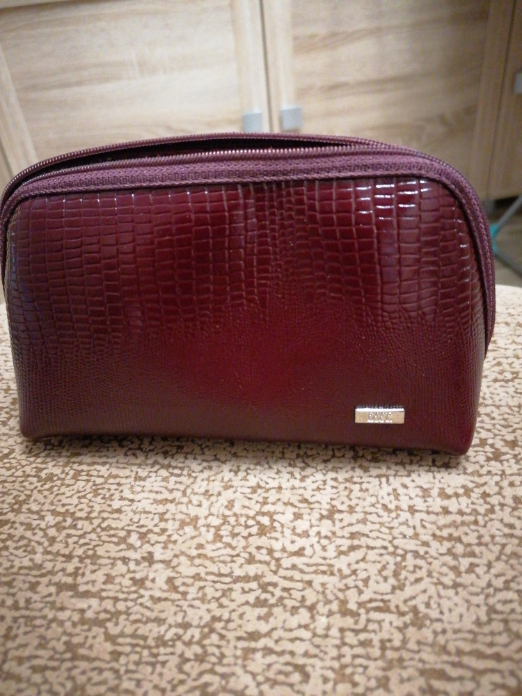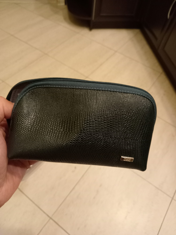 Очень рада, что приобрела эту удобную и стильную косметику. Очень приятная на ощупь кожа. Выглядит маленькой, но очень вместительная.