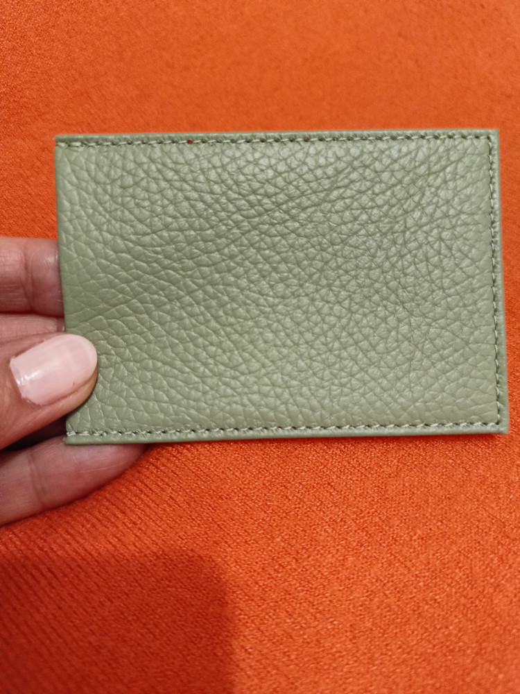 Очень красивый футляр для проездной карты. Думаю, подойдёт и для обычной банковской - размер стандартный. Только приобретён, и на данный момент держит карту внутри отлично. Качество кожи прекрасное и цвет очень красивый - настоящие оливки. Приятно, что это наше российское производство. Доставили в магазин очень быстро, на следующий день после заказа. Очень довольна покупкой! Спасибо, Baggins! ))