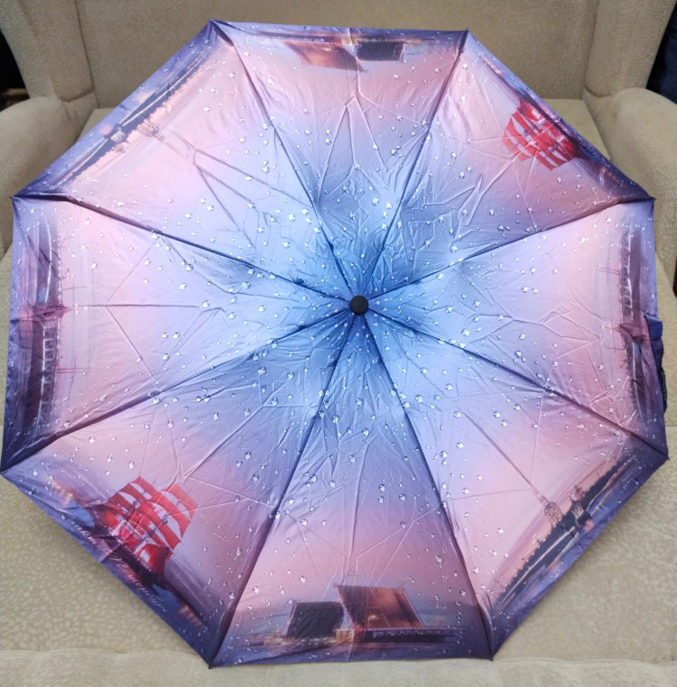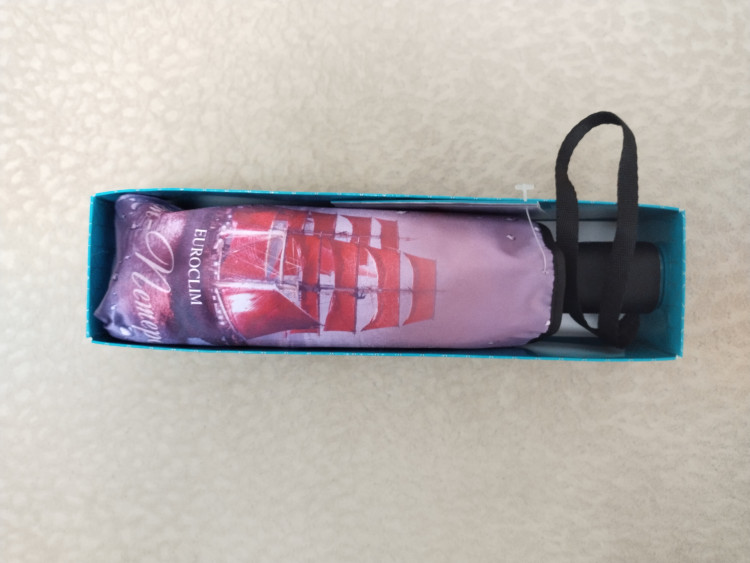 Отличный зонт, яркой расцветки, легко помещается в женскую сумку. Хорош для подарка, особенно гостю "культурной столицы"; упакован в коробку, так что не надо думать о дополнительной упаковке