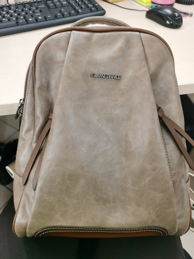Рюкзак классической формы, с нереальным количеством карманов (не смогла расстаться именно из-за этого). Очень аккуратно смотрится на спине, крепко пришиты лямки, легкий. Единственно материал эко-кожа мягковат, вдруг будут потертости...