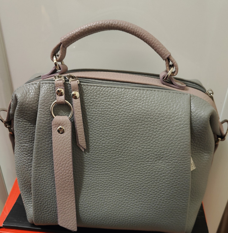 Сумка очень удобная, компактная и вместительная, много карманов, цвет серый чистый, розовый ближе к сиреневому цвету