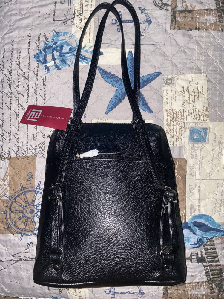 Организацией продажи довольна, все в порядке: оформление заказа, доставка, отслеживание. Сумка довольно вместительная и функциональная, лямки перестегивать не надо, чтобы превратить ее в рюкзак. Цвет красивый, кожа натуральная, много кармашков, строчки ровные, прошиты контрастными нитками. Отделение одно, но внутри есть пара карманов для документов на молниях и два открытых кармашка для телефонов или мелочей (правда для крупных смартфонов кармашки маловаты). Несколько узковатый "вход" в сумку, пластиковый конверт для документов А4, если ставить вертикально, то молния не закроется, а если его внутри сумки перевернуть вдоль, то вполне себе помещается. В общем и целом покупкой довольна. Думаю, буду покупать еще.