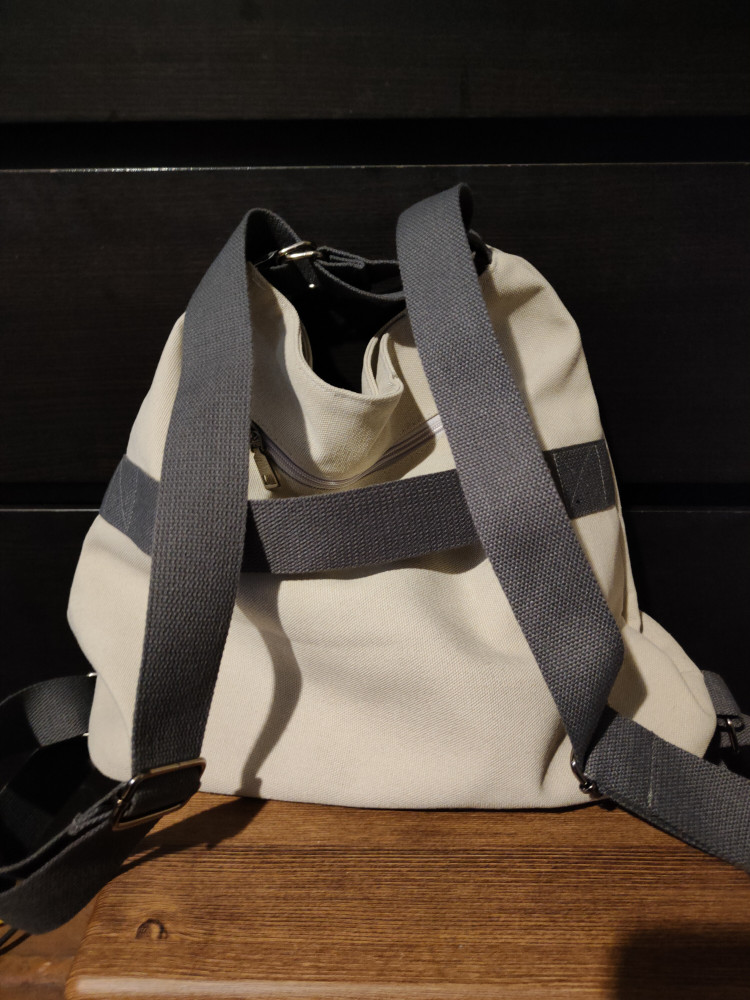 Давно хотела такую сумку-рюкзак. Удобная, достаточно легкая. Цвет не белый, скорее светлый беж.