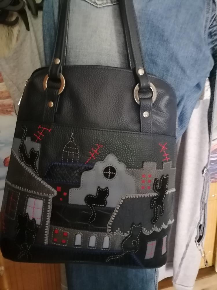 В полном восторге и от внешнего вида и от содержания! Материалы, швы и фурнитура - подобраны и выполнены безупречно. Надеюсь, прослужит долго, поскольку выполнен очень качественно. Радует, что изготовлен у нас, в России. Кошачья пара на фоне домов - изумительны, покорили меня с первого взгляда! Отдельная благодарность изготовителю за продуманность расположения карманов и отделений. Нет выпирающих внешних карманов, которые зрительно утяжеляют вид изделия, делают его громоздким. Центральная внутренняя перегородка внутри сделана не от самого дна, а на некотором расстоянии от него, поэтому на дно можно поместить более широкий предмет. Фото не считаю нужным прилагать, они соответствует представленным на сайте! Идея с переходом сумки в рюкзак и наоборот - гениальна! Очень удобно! Сумка-рюкзак при своих компактных размерах довольно вместительна и "расширяется" в соответствии пожеланиями владелицы, как и полагается любой женской сумке)) Пожелания к изготовителю: 1. Подумать насчет ремешков, сейчас они шириной 1,5 см, может имеет смысл увеличить их до 2 см. 2. Выполнить подобный трансформер в светлых оттенках, вроде светло-бежевого, кремового, сливочного; можно с аппликациями, можно и без, главное - без внешних выпирающих карманов. С удовольствием бы приобрела такой на лето.
