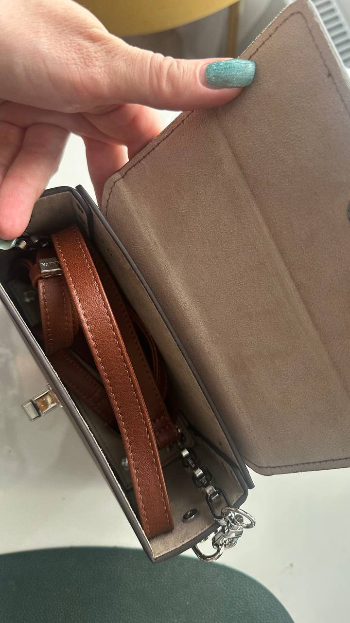 выбирала сумку по фотографии, забрала в салоне с возможностью примерки! сумка понравилась, прошита качественно, все швы ровные, фурнитура тоже выглядит достойно. Удобно что у сумки есть длинный ремешок, планирую носить ее как кросс боди. Благородные коричневый цвет! Классика, которая никогда не выйдет из моды