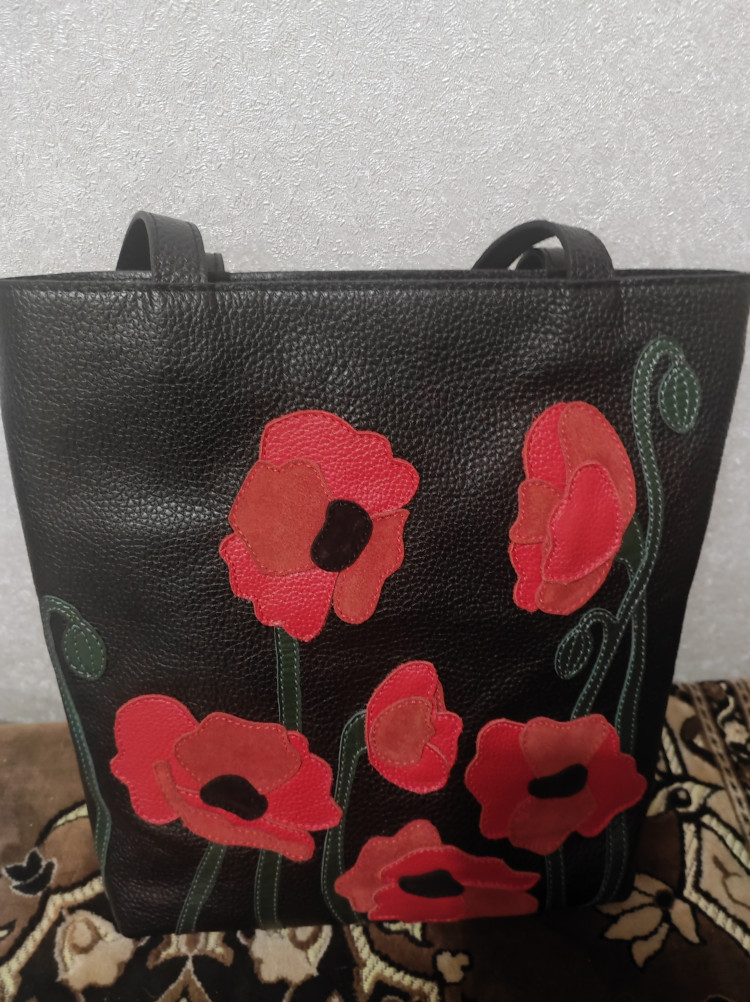 Это уже не первая сумка, купленная мной в этом магазине. И как всегда оставила очень приятное впечатление. Она удобная, вместительная. Кожа мягкая и приятная на ощупь. А аппликация просто произведение искусства! Спасибо большое за доставленное удовольствие!