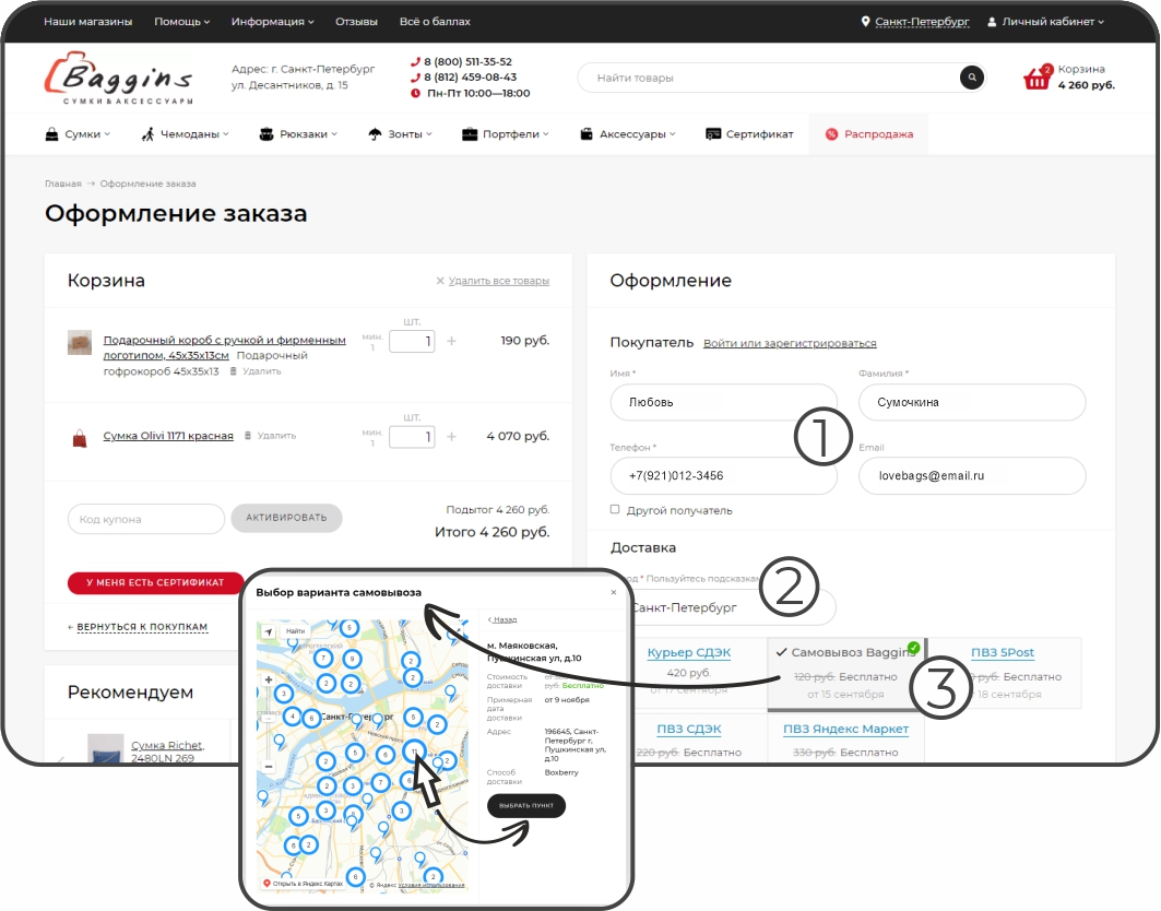 Укажите тип доставки, Ваш адрес для курьера или пункт выдачи на карте.