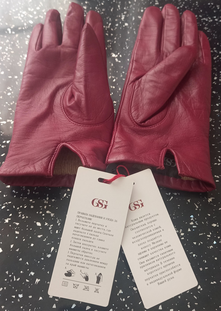 Приобрела перчатки в цвете бордо. Натуральная кожа. Размер соответствует. Стильные и очень эффектные. Спасибо, магазину ,, Баггинс,, за прекрасные товары. Уже не одна покупка совершенна в этом магазине.