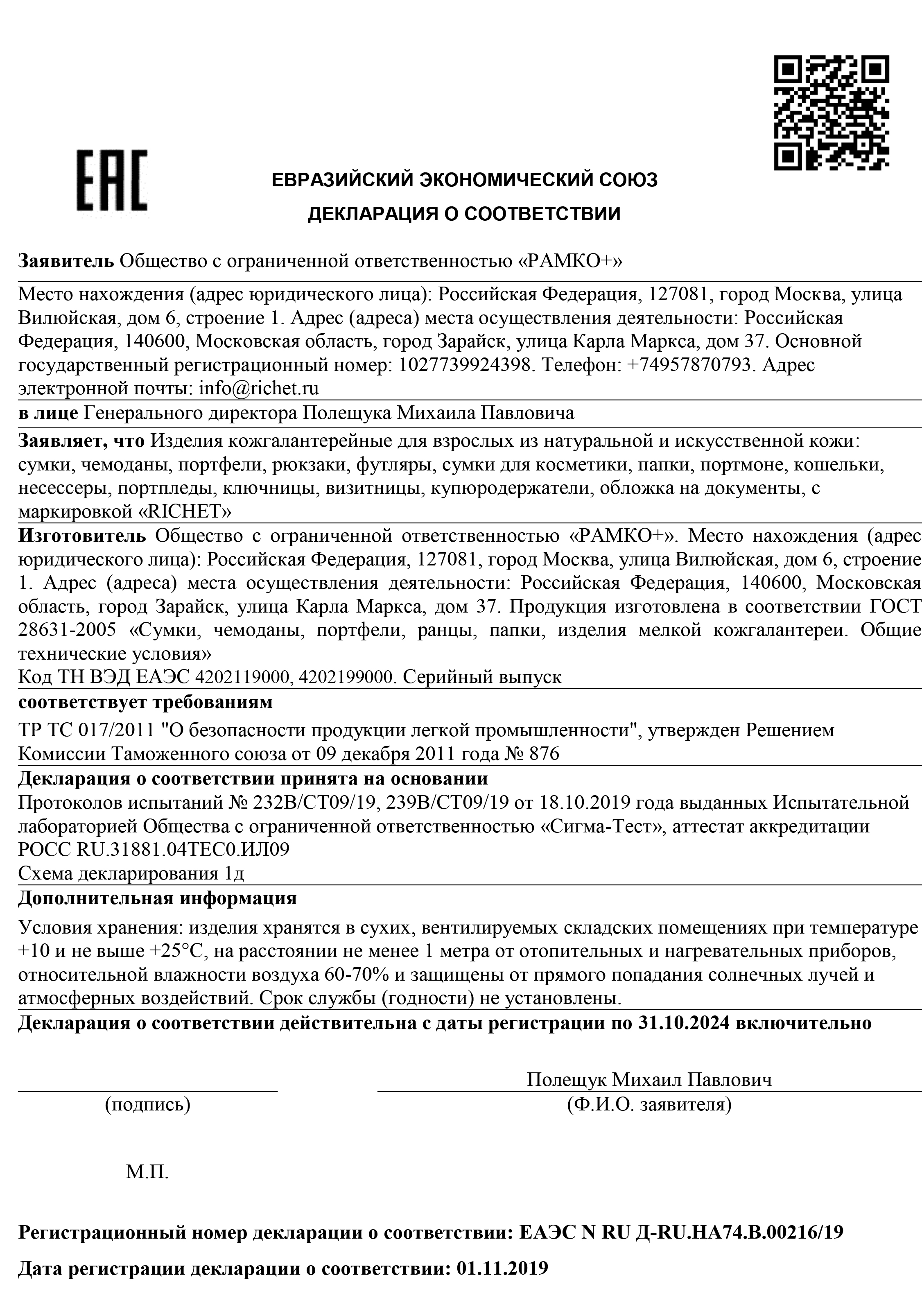 Производство - страна, в которой был изготовлен товар. | Россия |