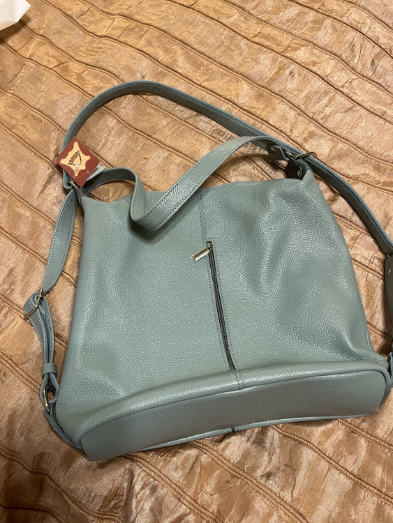 Покупаю подобного фасона кожаную сумку данного производителя второй раз . Первая сумка продолжает отлично служить своей хозяйке-проверено непростыми условиями пользования- зимними сибирскими морозами, летней жарой, большим весом содержимого !! Жаль только , что в магазинах очень скудная цветовая гамма этих сумок -поэтому пришлось делать интернет-закпз .Сегодня забрала свою новую сумочку из ближайшего магазина -Чему очень рада , покупкой довольна -летний сезон буду пользоваться мятного цвета сумкой !!!