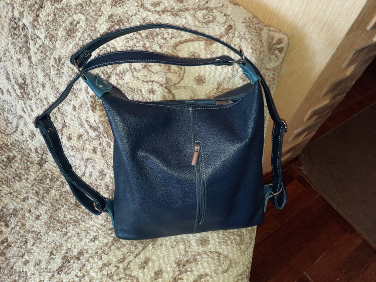 Организацией продажи довольна, все в порядке: оформление заказа, доставка, отслеживание. Сумка довольно вместительная и функциональная, лямки перестегивать не надо, чтобы превратить ее в рюкзак. Цвет красивый, кожа натуральная, много кармашков, строчки ровные, прошиты контрастными нитками. Отделение одно, но внутри есть пара карманов для документов на молниях и два открытых кармашка для телефонов или мелочей (правда для крупных смартфонов кармашки маловаты). Несколько узковатый "вход" в сумку, пластиковый конверт для документов А4, если ставить вертикально, то молния не закроется, а если его внутри сумки перевернуть вдоль, то вполне себе помещается. В общем и целом покупкой довольна. Думаю, буду покупать еще.
