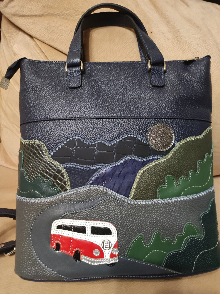 Сумка-рюкзак женская с аппликацией "АВТОМОБИЛЬ №3" среднего размера. При необходимости вмещает формат А4. Рюкзак застегивается на молнию и имеет одно отделение. На задней стенке также есть карман на молнии. Лямки рюкзака регулируются по длине, при необходимости их можно снять. Сумка-рюкзак на подкладке. Внутри сумки расположен карман на молнии из плотного материала и карман на молнии. Сумка с аппликацией в заказе может незначительно отличаться от оригинала (фото) по фактуре и оттенку кожи.