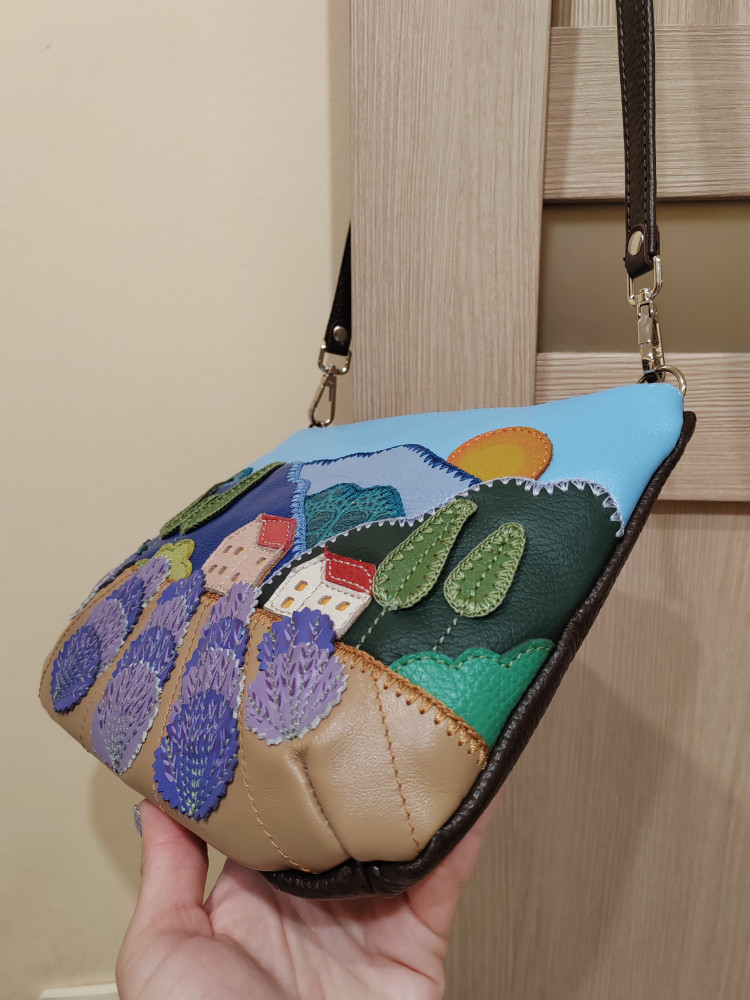 Высококачественная кожа и нитки изделий обеспечивают высокую износостойкость, а как следствие – длительный срок эксплуатации. Мягкость кожи и аккуратные швы делают времяпрепровождение с сумкой приятным на ощупь, а яркие объемные аппликации радуют глаз, поднимая настроение.