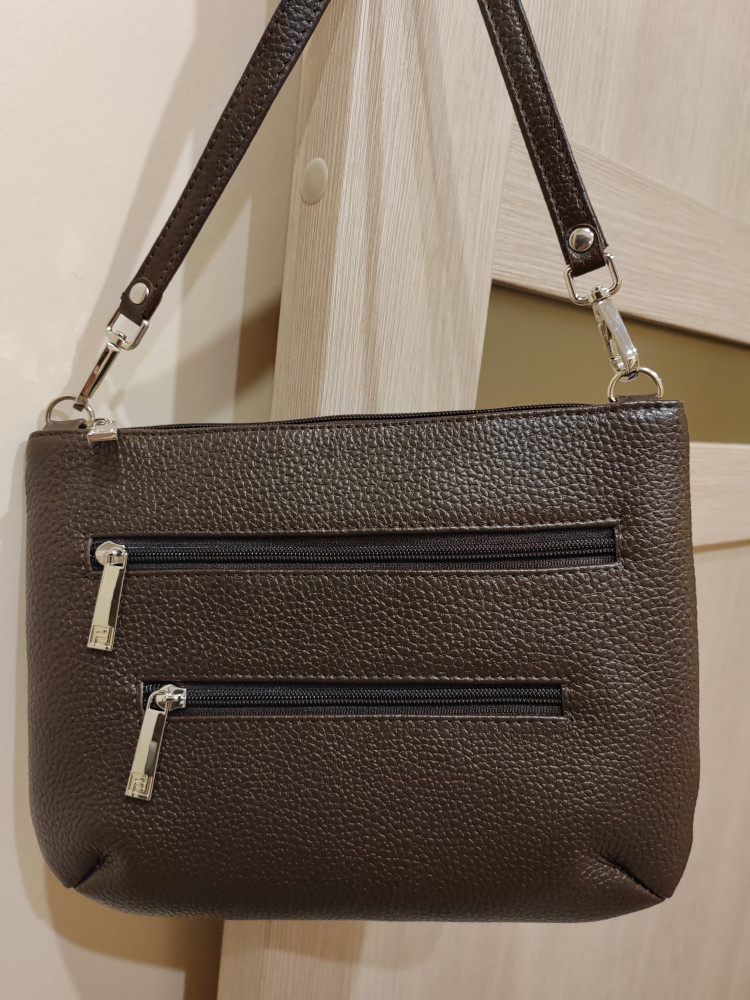 Аккуратная кожаная сумочка - планшет отлично подойдёт для ежедневного использования, например, для городских прогулок. Имеет регулируемый плечевой ремешок. Закрывается на молнию. Внутри одно отделение, в котором расположен карман на молнии и два открытых кармашка для мелочей. Два наружных кармана расположены на задней стенке сумки и закрываются на молнии.