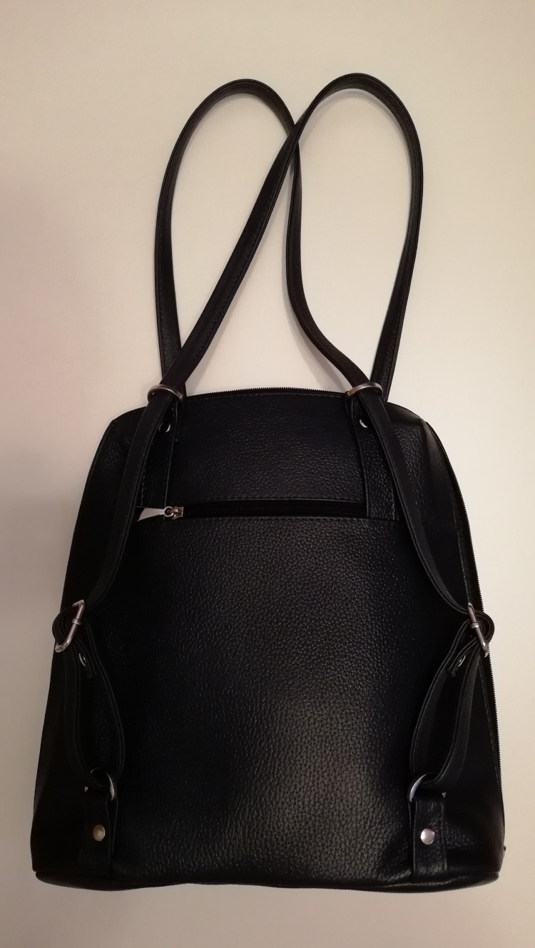 Сумка-трансформер женская с аппликацией "Город №32" и удлиненными ручками на плечо. Сумка застегивается на молнию и имеет одно отделение. Ручки сумки легко затягиваются в лямки рюкзака и регулируются по длине. Ручки имеют отделку металлической фурнитурой. На задней стенке расположен карман на молнии. Сумка-трансформер на подкладке. Внутри сумка имеет средник на молнии из плотной материала,карман на молнии и накладной карман для мобильного телефона и визиток. Сумка с аппликацией в заказе может незначительно отличаться от оригинала (фото) по фактуре и оттенку кожи.