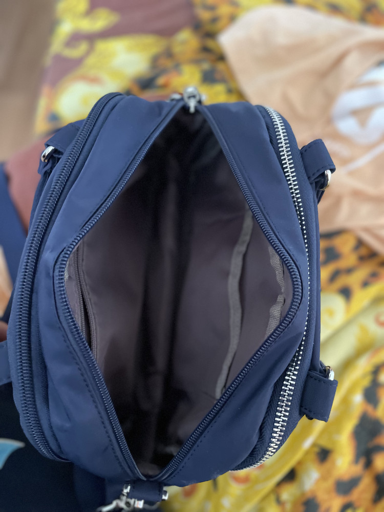 Отличная сумка. Очень много кармашков и 3 отделения. Легкая. Можно носить и в руке и на плече. Самое главное, что при всей своей вместительности она смотрится очень небольшой. Можно носить и осенью - ткань водонепроницаемая. Подруги завидуют!