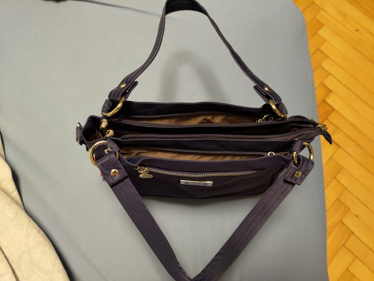 Вместительная, красивого цвета, очень много кармашков и отделений, есть дополнительный ремешок через плечо.