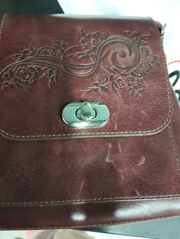 Украшает сумочку рисунок сказочной птицы – это тиснение на коже.