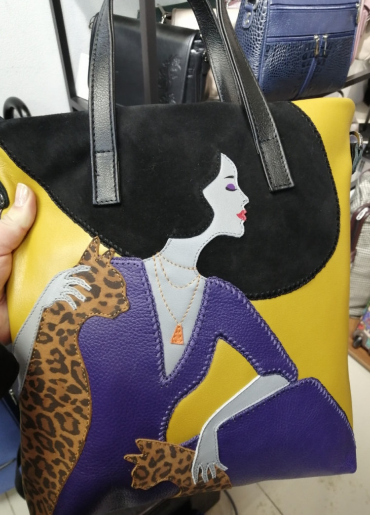 Оригинальные сумки с яркими аппликациями - настоящие произведения искусства, в создании которых участвовали талантливые художники культурной столицы. Каждая модель является самостоятельной картиной, выполненной как сюжетная объёмная аппликация. При их создании профессионально учитывается цветовая гамма, игра теней и объёмность узора.