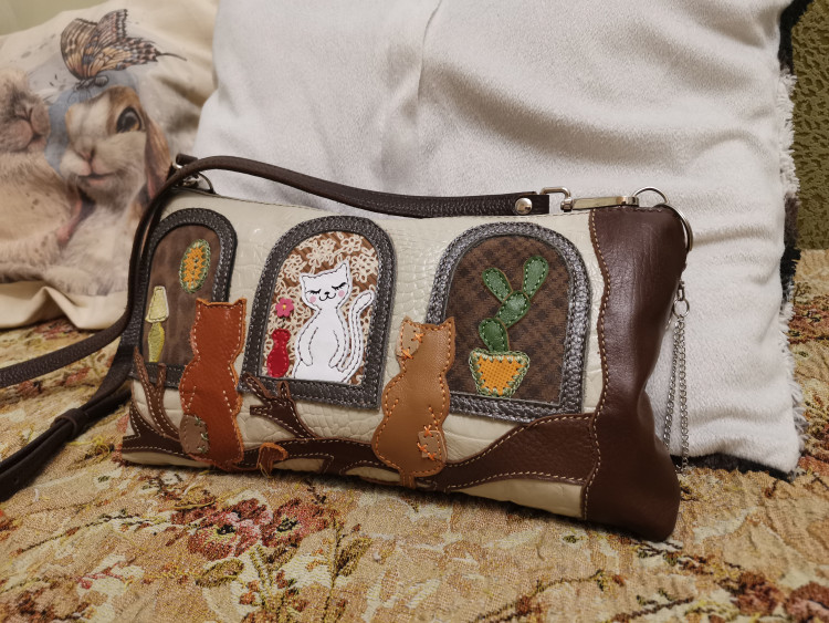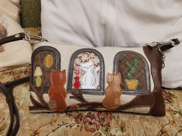 Давно искала что-то подобное и необыкновенное! И нашла: цвет, аппликации и их мотив, форма, объем, ширина ремешка, ну всё, как мне надо! Натуральная кожа! Можно ли желать лучшее! Спасибо производителям за идею (аппликации), за качество и тщательную проработку деталей: краешек внутренних карманов обшит бейкой, это просто супер, просто шик!