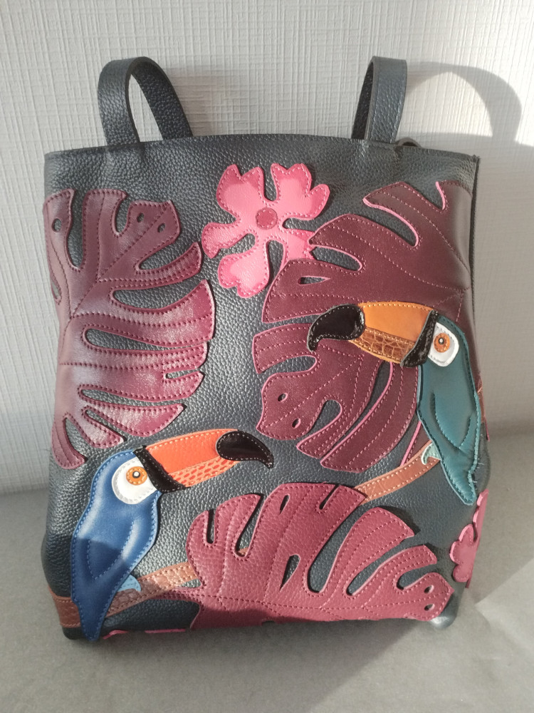 Высококачественная кожа и нитки изделий обеспечивают высокую износостойкость, а как следствие – длительный срок эксплуатации. Мягкость кожи и аккуратные швы делают времяпрепровождение с сумкой приятным на ощупь, а яркие объемные аппликации радуют глаз, поднимая настроение.