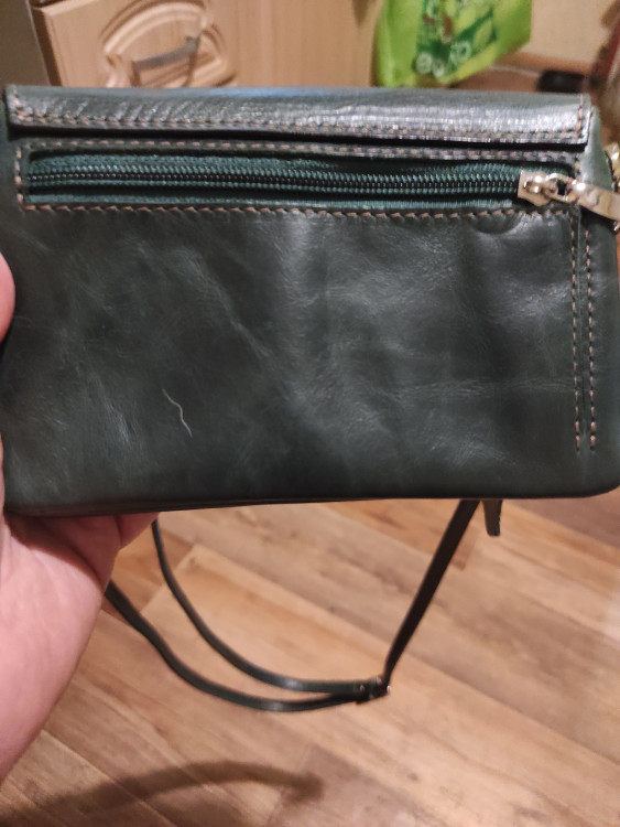У кожаной сумочки изящный тонкий ремешок, длина которого регулируется пряжкой. Максимальная длина кожаного ремешка составляет 150 см.